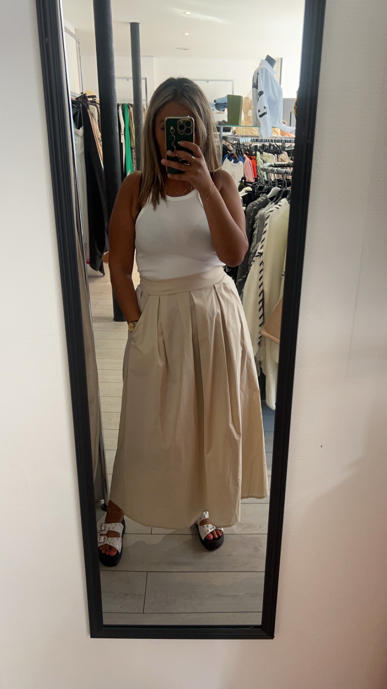 Découvrez notre jupe longue trapèze à poche, parfaite pour les occasions spéciales. Fabriquée avec des tissus de qualité supérieure, cette jupe offre une coupe élégante et confortable. Les poches ajoutent une touche pratique à cette pièce luxueuse. Associez-la avec un top élégant pour un look sophistiqué.