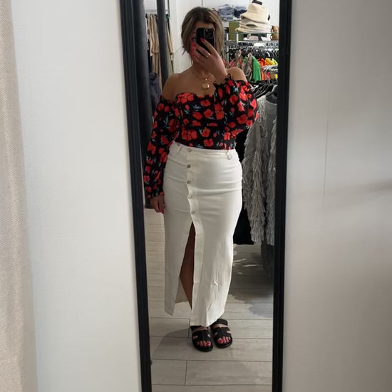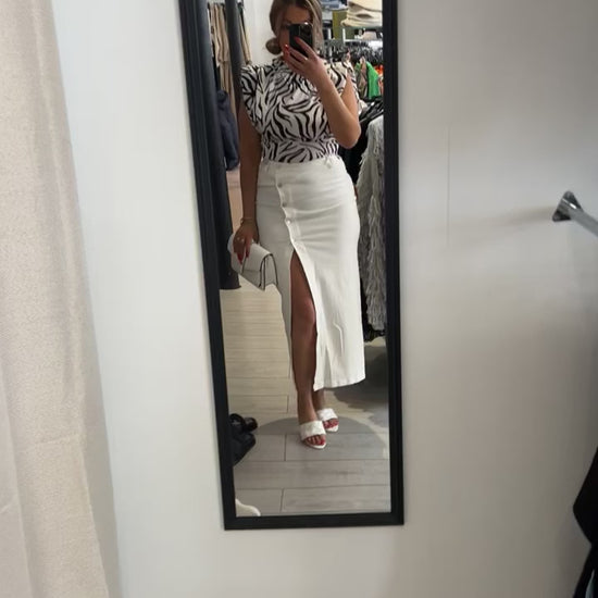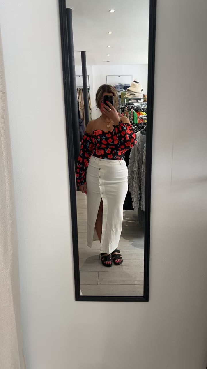 Découvrez notre jupe longue blanche en jean avec petite fente à l'avant. Que vous cherchiez une tenue pour l'hiver ou pour l'été, cette jupe saura vous séduire avec sa polyvalence et son style tendance. Fabriquée avec du jean de qualité, elle ajoutera une touche de sophistication à votre garde-robe.
